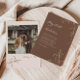 Featuring minimalist floral line art. The back of the invitation features a photograph of the couple. Terracotta is a popular colour for weddings. Paired with accents of gold botanicals this invitation is both sophisticated and vibrant. This terracotta floral wedding invitation is perfect for boho weddings and fall weddings. A colour combo of warm calming tones fits in superbly for a wedding with a serious autumn feel. Trendy terracotta and sweet blush combine effortlessly with dusty neutrals that welcome in the fall season. This understated citrusy combo unexpectedly comes together in the most beautiful way. It’s totally chic and bohemian, conveying the harvest, warmth, and cosiness of the fall season.