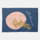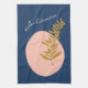 This stylish kitchen dish towel features a pretty boho botanical illustration with abstract shapes in pink, blue, and gold. Personalise it with your name. Great gift idea!