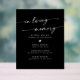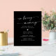 This boho modern black wedding in loving memory acrylic sign is perfect for a minimalist wedding. The modern bohemian design features simple rustic calligraphy with a unique yet classic style. Perfect for any season: spring, summer, fall autumn or winter.
