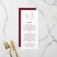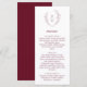 This monogram wedding dinner menu features a burgundy typography and white background with refined boho botanical wreath. A classic monogram adds a formal touch, while the clean layout presents the menu clearly. The design feels warm, stylish, and easy to read.