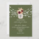 Elegant, chic, boho, watercolor floral, burgundy peach and green wedding invitation with photo, website and QR code for rsvp.