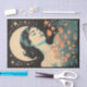 Unleash your artistic spirit with our decoupage paper featuring a woman in a boho moon and floral design in striking block print style. Against a black background, it adds a touch of mystique and elegance to your creative projects.