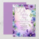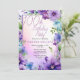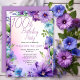 Elegant bohemian style morning glories and aster flowers floral design "100th Birthday Party" design featuring a floral frame in blue, lavender and purple, on a pastel-toned watercolor background.