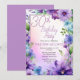 Elegant bohemian style morning glories and aster flowers floral design "30th Birthday Party" design featuring a floral frame in blue, lavender and purple, on a pastel-toned watercolor background.