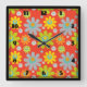Boho Multicolor Daisies On Orange Square Wall Clock