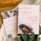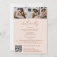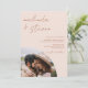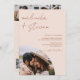 A modern, chic and elegant wedding invitation with arch, script names with a hand written calligraphy in beige and terracotta with an arched photo and another 3 photos at the back. A modern all in one wedding invitation with rsvp, details , accommodations and qr code. All the text, names and background colours are customisable. A simple and minimalist invitation.