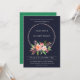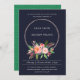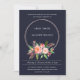 BOHO NAVY FEATHER BLUSH FLORAL WREATH WEDDING INVITATION