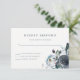 This trendy and elegant wedding RSVP card features navy blue watercolor peony flowers with lush leaves, berries, and feathers.
