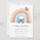 "Boho Neutral Rainbow Peach Dusty Blue Butterfly Boy or Gender Neutral Baby Shower Invitation." Modern, simple, hand drawn style rainbow with stars, dots and hearts in contemporary muted colours of dusty pastel and steel blue, silver grey and amber gold. The reverse side can have the background colour changed. Art by internationally licensed artist and designer, Audrey Jeanne Roberts, copyright.