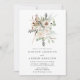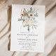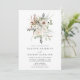 Elegant, tropical floral wedding invitations featuring a bouquet of cream tropical flowers, palm leaves, pampas grass, eucalyptus, and green foliage. Personalise the modern floral wedding invites with your names and wedding details below. The neutral boho wedding invitations are perfect for your summer beach wedding.