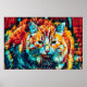 Boho Orange Blue Colourful Hippie Tabby Cat Poster
