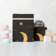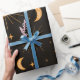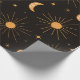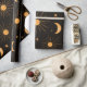 This is orange sun and moon with stars and sparkles on dark background. it's designed in boho hippie style.