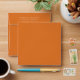 A boho orange colour square envelope. The inside is coordinated with watercolor pattern of oranges,lemons and blossoms. Personalise with your return address label on the back flap
