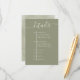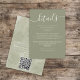 A simple minimalist wedding rsvp with a QR code website online details with timeline, with URL scannable scan online, guests more information URL response, respond via website QR code, with a botanical boho tropical destination, a watercolor palm leaves leaf design, for resort beach ocean island venue, modern simple green sage colour, a tropical greenery floral foliage, an elegant casual simple respond enclosure