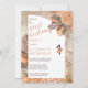 Whimsical watercolor dried light terracotta hydrangeas and palm leaves floral "1st Birthday Party" baby girl's birthday design. Composite design by Holiday Hearts Designs (rights reserved).