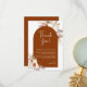 Boho baby shower thank you card in terracotta burnt orange and white. Beautiful modern design with hand painted botanical accents. Features pampas grass, dried banana leaves and roses. Trendy bohemian desert theme perfect for fall, winter, spring or summer. Perfect for a stylish baby shower.
