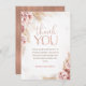 Sweet boho floral girl's baby shower thank you card featuring a faux rose gold foil heading and various dry floral arrangements in blush and natural tones and with pampas grass.