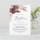 This boho pampas grass baptism invitation is perfect for a summer baby baptism. The floral watercolor design features bohemian burgundy and blush pink flowers with sprigs of neutral pampas grass and golden dried palm leaves.