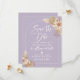 Save The Date engagement card in beautiful tones of lavender, beige, and white with an arch design and pampas grass foliage.