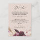 This boho pampas grass peach details enclosure card is perfect for a summer wedding. The floral watercolor design features bohemian burgundy and blush pink flowers with sprigs of neutral pampas grass and golden dried palm leaves.