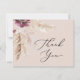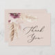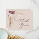 This boho pampas grass peach thank you card is perfect for a summer wedding. The floral watercolor design features bohemian burgundy and blush pink flowers with sprigs of neutral pampas grass and golden dried palm leaves. Personalise the back of the card with your names, and a thank you message. Alternatively, leave the thank you message template section blank to hand write a personalised note on each card after they arrive. These cards can be used for a wedding, bridal shower, or any special event.