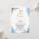 A wonderful baptism baptismal invitation with a desert theme. The front of this card features a hand-painted watercolor bouquet of pampas grass, dried palm leaves, eucalyptus greenery, blush pink roses, and white orchids. The mother's name is written in a hazy pink similar to the blossoms. The reverse side of the cards has a pink background with a white diamond pattern. Ideal for the seasons of spring, summer, fall, and winter