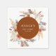 Boho baby shower napkins in terracotta burnt orange and white. Beautiful modern design with hand painted botanical accents. Features pampas grass, dried banana leaves and roses. Trendy bohemian desert theme perfect for fall, winter, spring or summer. Perfect for a stylish baby shower.