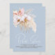 Pampas grass, blush anthuriums, pink orchids and roses elegant modern boho dusty blue bridal shower invitations