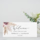 This boho pampas hanging seating chart welcome header is perfect for a summer wedding. The floral watercolor design features bohemian burgundy and blush pink flowers with sprigs of neutral pampas grass and golden dried palm leaves. The card prints on the front and back (double-sided). Please check the collection for the coordinating table number seating chart cards.