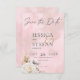 This design features blush pink and white roses and tan pampas grass half frame on a soft blush pink watercolor and subtle glitter background. This card is part of the Boho Pampas & Pink Roses Wedding Suite Collection created by Simply Farmhouse Press.