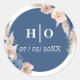 Matching elegant Wedding Classic Round Sticker for the Boho pastel floral blue cream Wedding Stationary. Text is fully customisable.