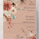 Boho Peach & Rust Floral & Feather Peach QR Code All In One Invitation