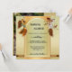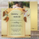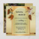 A bohemian style wedding invitation with a dreamcatcher theme in warm gold green with feathers. On the back is your custom photo.