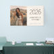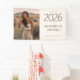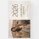 This modern graduation design features a clean split layout that pairs a warm, sunlit portrait with a soft neutral text panel for a balanced and sophisticated look. The golden desert landscape and glowing sky create a relaxed, earthy aesthetic, while the minimal typography adds a refined and contemporary touch. A bold “2026” stands out as the focal point, complemented by the graduate’s name and school displayed in a simple, elegant style. The combination of natural tones and modern design creates a timeless and stylish way to celebrate a graduation milestone.