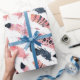 Lovely watercolor digital art pattern wrapping paper features a collection of Boho style feathers in pinks and black