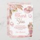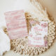Celebrate a sweet "First Rodeo" with this pink boho-themed 1st birthday collection! Featuring floral accents of soft pink roses and pampas grass, along with adorable western touches like a pink cowgirl hat and fringed cowgirl boot, this invitation is perfect for a bohemian cowgirl celebration. Ideal for a unique and stylish western birthday party, this invitation will delight guests with its charming design.
