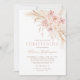 An elegant baptism/christening invitation featuring pink florals and boho accents. Perfect for celebrating this special occasion with timeless charm.