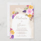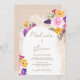 Pretty botanical Boho pastel pink earth tone and pink, yellow purple floral watercolor and pampas grass wedding party invitation with pampas watercolor,arch shaped with beige and with colourful garden flowers on sandy beige.