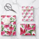 Boho Pink Watercolor Flowers Burgundy White Wrapping Paper Sheet