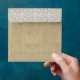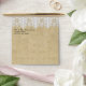 Square Size Envelope NOTE: this is a flat printed design, there are no raised lace, fabric or layered elements on this product. COLOR PALETTE: white, tan, burlap DESIGN COLLECTION: Matching two sided, printed, return address square wedding invitation envelope. This is a modern BOHO or Bohemian Style, gypsy inspired, trendy chic stylish look. It has a simple, clean yet lovely beauty. Created from vintage Victorian or Edwardian era swirl baroque deep drop leaf lace pattern and tear drop design ornaments that have been graphically hand transformed into an elegant beautiful, sophisticated lace trim border. The laces are laid on top of a tea stained burlap textured background pattern. A complete wedding invitation set is available to match. The reverse side has the tear drop, diamond swirl point lace pattern in a full repeat pattern.