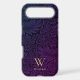 Boho Purple Floral Gold Monogram Phone Case. Monogram is an elegant gold serif font and your name is a white sans serif font.