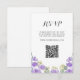 This boho wedding RSVP card features original watercolor floral artwork in delicate shades of purple on a crisp white background, creating a soft and romantic look. Designed with convenience in mind, it includes space for your wedding website and a QR code, making it easy for guests to respond and access all your event details. Perfect for a bohemian-inspired celebration, this RSVP card adds a touch of artistic charm to your wedding suite.