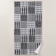 This beach towel has a Boho design of squares with patterns in each in black and white.
