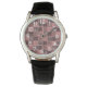 This men's watch has a Boho design of squares with patterns in each in black and pink.