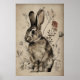 Boho Rabbit Bunny Flower Print, Rustic Hare Poster