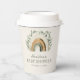 Boho Rainbow Baby Paper Cups. Introducing our enchanting Boho Rainbow Baby Shower Collection, where whimsical hand-painted watercolor rainbows in earthy tones of sage green, terracotta, and tan dance alongside trendy eucalyptus botanicals on a serene beige backdrop, with a complementary pattern on the reverse in deep sage. Embracing a rustic, bohemian chic aesthetic, this collection encompasses everything you need for a memorable celebration, from exquisite invitations and enclosure cards to a charming welcome sign, delightful gift tags, favour bags, and even coordinating paper plates, cups, and napkins. Let this collection set the stage for a joyous and stylish gathering to celebrate the impending arrival of your little one.