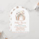 This bohemian-themed invitation features a muted colour palette with dusty blue and terracotta. It includes a matching backside with rainbows.