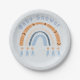 Boho Rainbow Blue Kraft Boy Baby Shower Paper Plate
