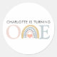 Cute boho rainbow turning one party stickers for your favour bags, envelope seals for invites, or gift stickers.
