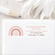 Boho rainbow return address design. Features shades of rosy pink and medium and dark terracotta on white.